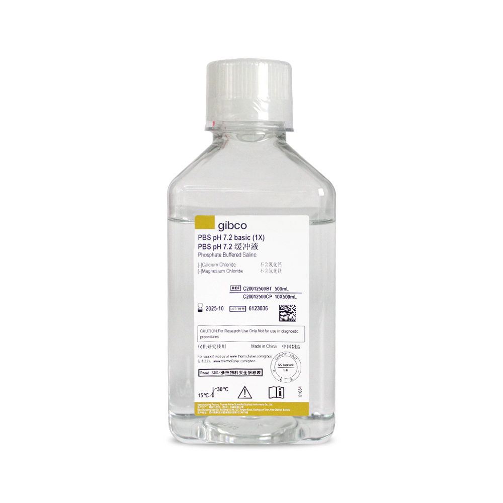 500mL国产磷酸盐缓冲液PBS,pH 7.2,无钙、镁、酚红